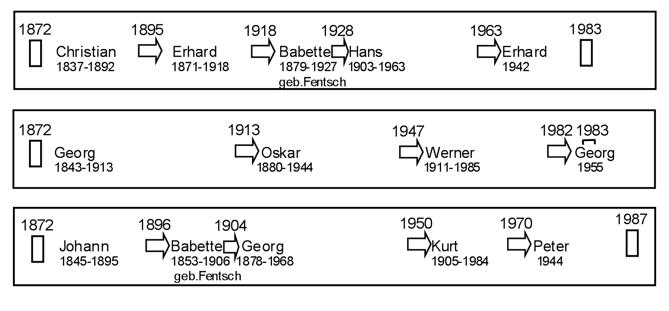 Der Stammbaum beginnt mit Katharina, die die Firma mit begründet hat und endet mit der letzten Generation. Die Namen sind schwer zu lesen. Über einen Umweg kann man sich das Bild in voller Größe ansehen: rechte Maustaste und Bild anzeigen anwählen. Anschließend kann man das Bild vergrößern.