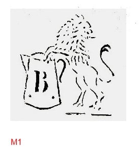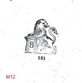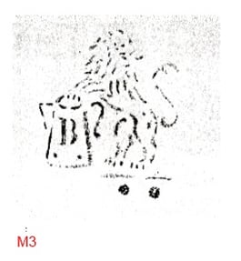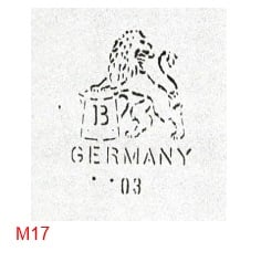 Ab 1897 wurde eine (M 3) sehr ähnliche Brennmarke verwendet, die aber nicht mehr zwei, sondern drei Querstriche unter dem Löwen hat. Zusätzliche Markierungen definieren das Brennjahr. Gegenstände mit dieser Marke haben immer noch angenietete Henkel und Griffe!