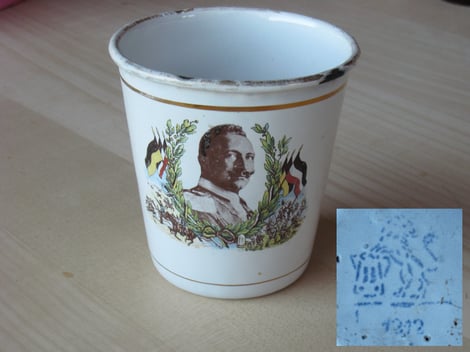 Auf dem Becher ist Wilhelm II abgebildet. schwarz/gelb ist die Flagge der Habsburger und schwarz/weiss/rot war die Nationalflagge des Kaiserreiches.