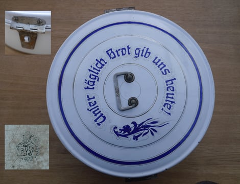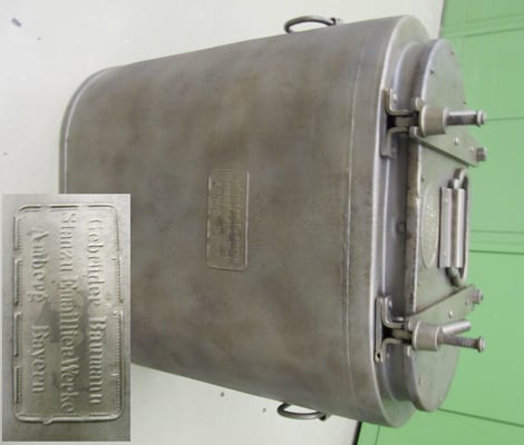 Die Bilder des Essensträgers wurden mir zugeschickt. Der Träger ist innen emailliert und war im 1.Weltkrieg im Einsatz. Der einzige Beleg für die Produktion von militärischen Artikeln im 1. Weltkrieg.