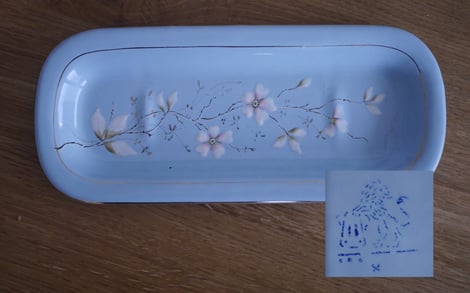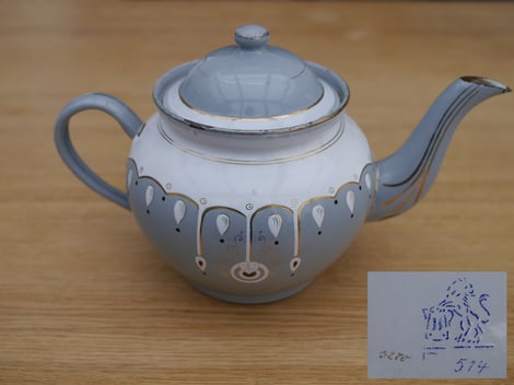 Die Teekanne ist das älteste Stück, das ich habe. Es ist noch nicht gemarkt.Es kommt aus dem Familienbesitz, daher gehe ich davon aus, dass es auch in der Fabrik gefertigt wurde.