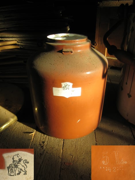 Ich kann mich an einen Glasdeckel auf dem Behälter erinnern. Oskar lagerte Sojabohnen in den Behältern ein. Die Marke läßt als Produktionsdatum 1924 vermuten. Eine Katalognummer habe ich nicht gefunden.
