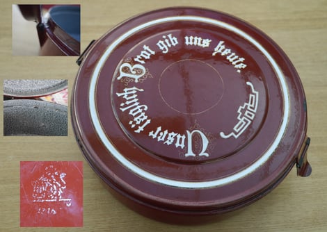 #1146? Brotdose braun/innen wolkig grau; im Katalog von 1913 ist die Brotdose nicht aufgeführt!; produziert Dezember 1910.